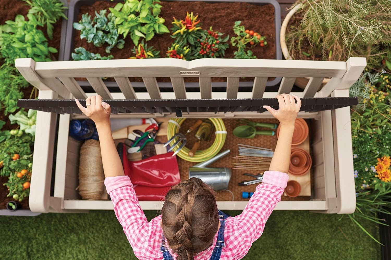 - Ideal outdoor garden bench for garden tools and equipment, garden furniture cushions, garden games and accessories